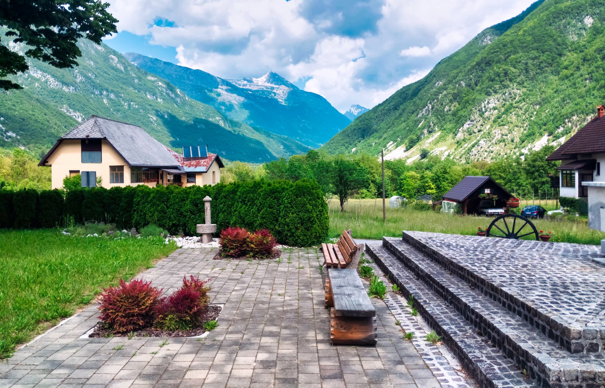 A hegyek ölelésében jól felszerelt apartmanok várnak minket 2-4 fős szobákkal, a völgyet a Júliai-Alpok legmagasabb csúcsai veszik körül.