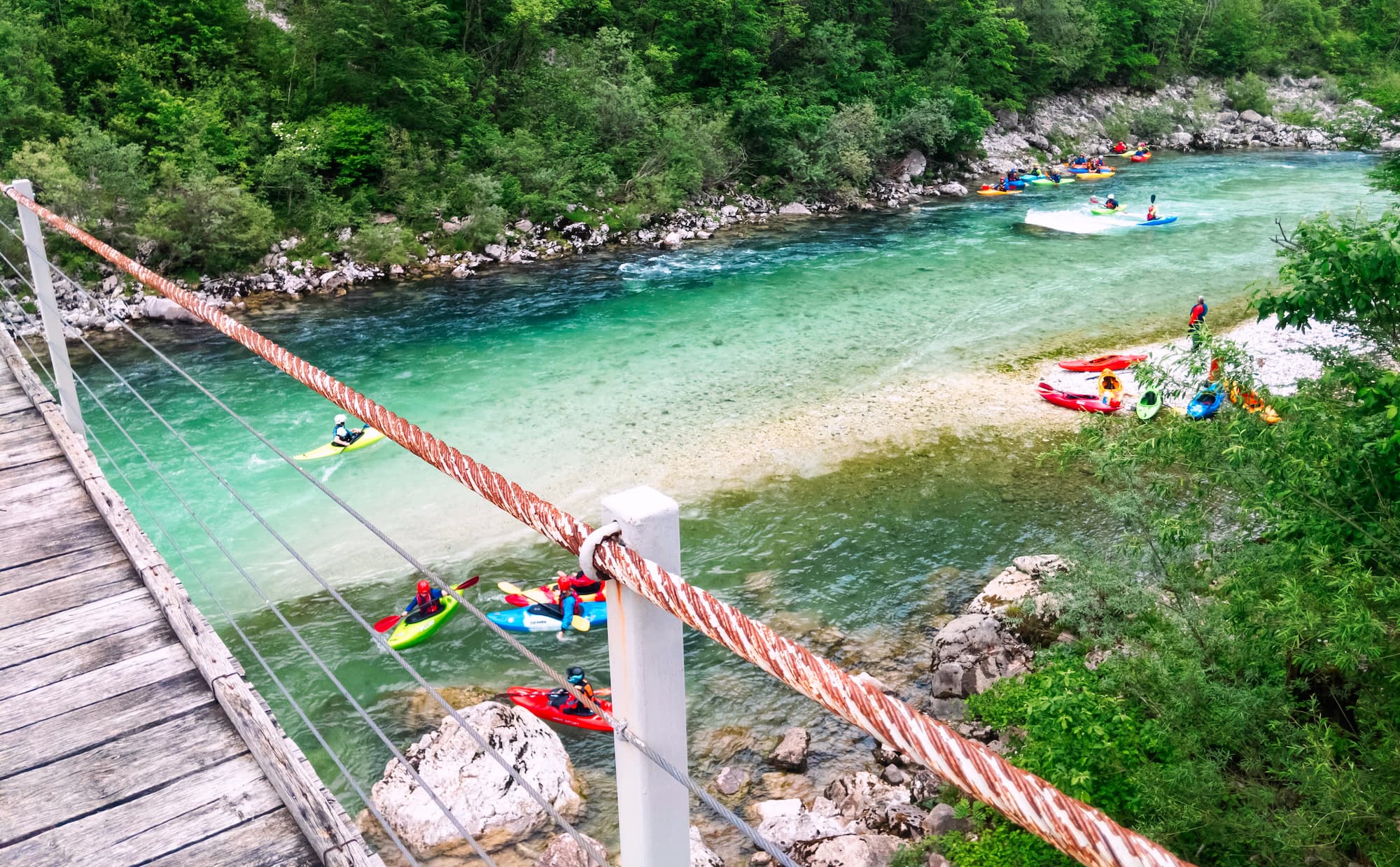 A túra utáni délután szabadprogram: választhatunk pihenést, vagy egy izgalmas fakultatív rafting túrát a Soca vadregényes, kristálytiszta vizén.